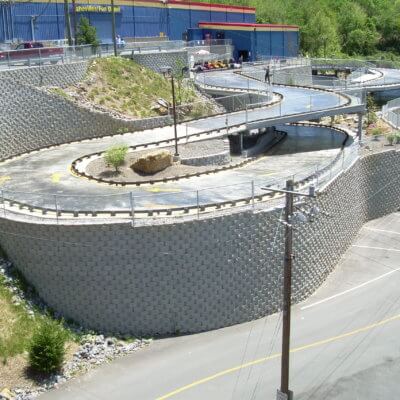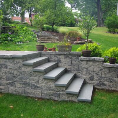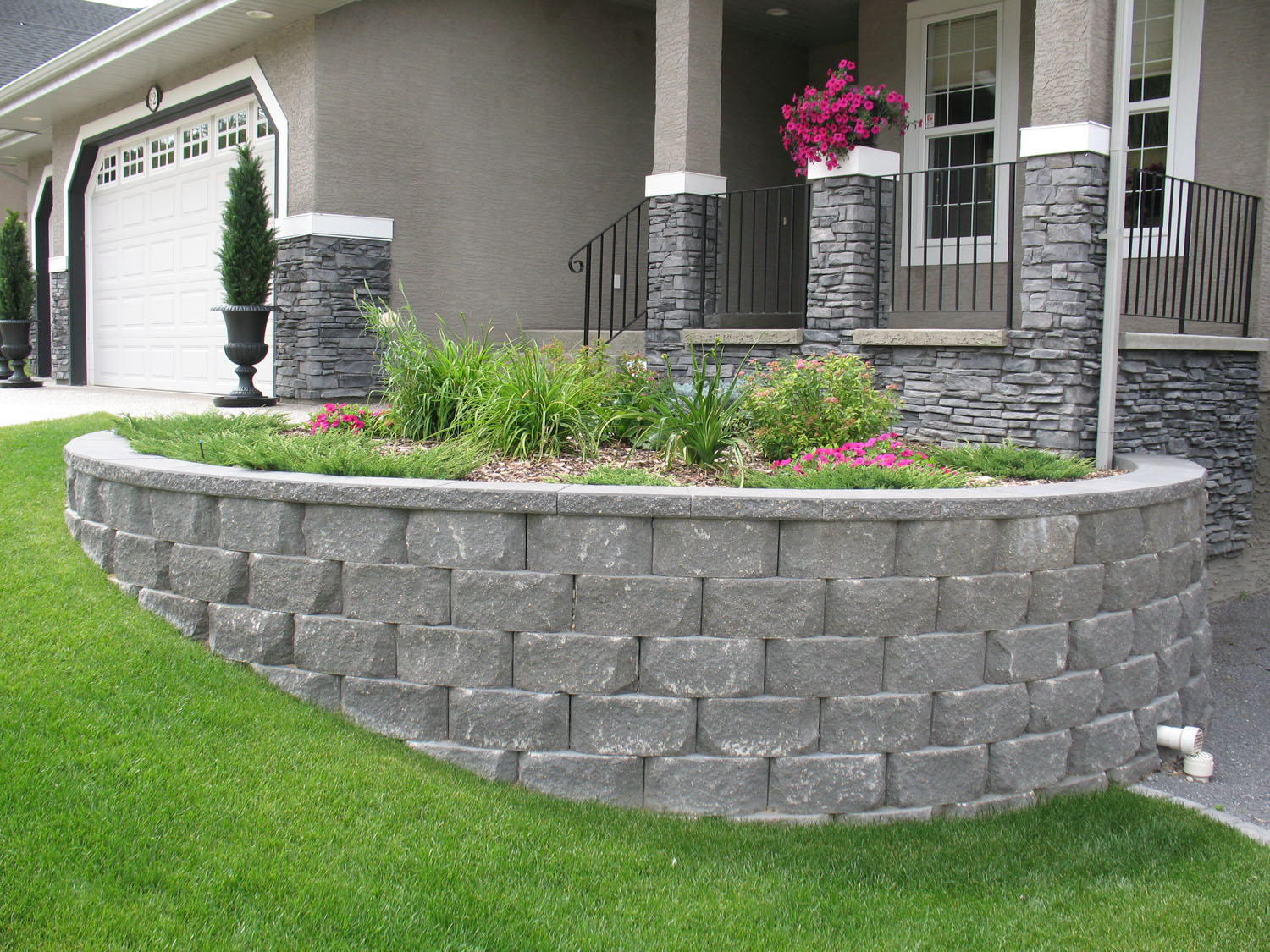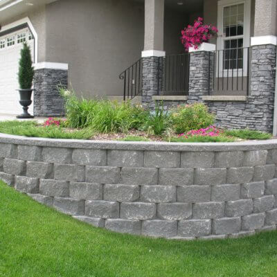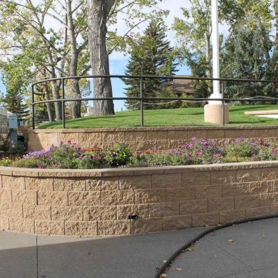 CornerStone 100 retaining wall block photos. Below are examples of landscape projects that have been completed. Photo gallery of retaining walls ranging from large commercial to simple backyards. The use of the blocks are endless and with correct installation procedures your retaining wall will last a lifetime. Take your time and get inspired by all of the incredible project that have been built.